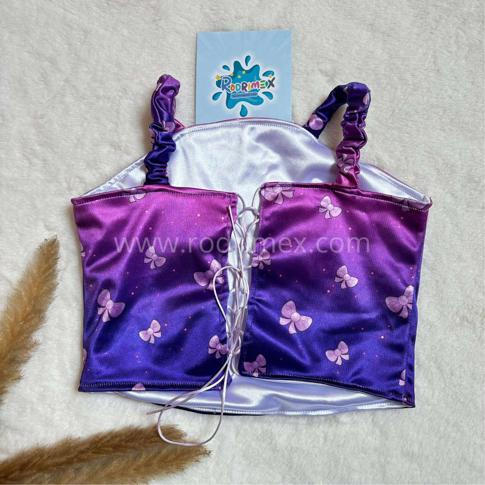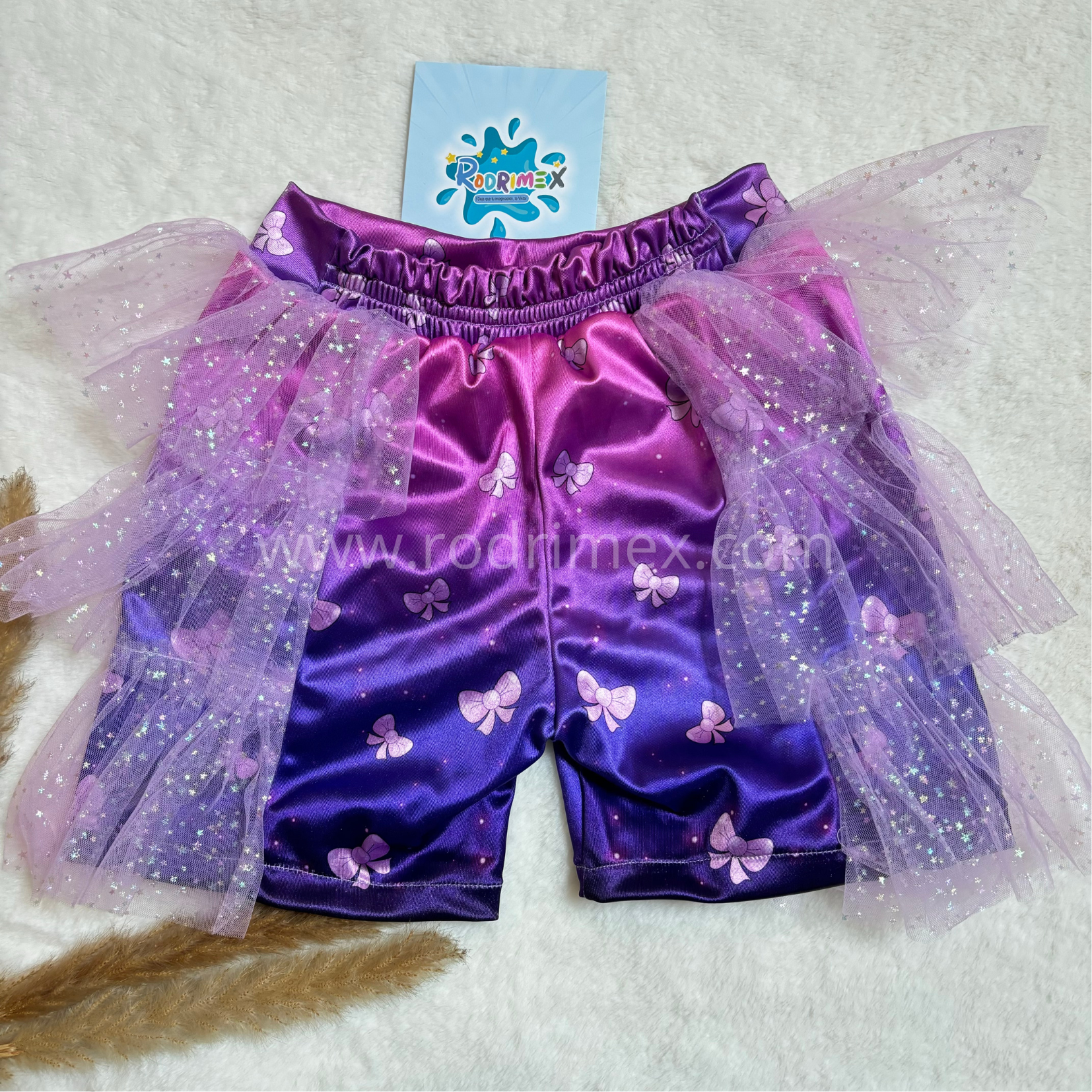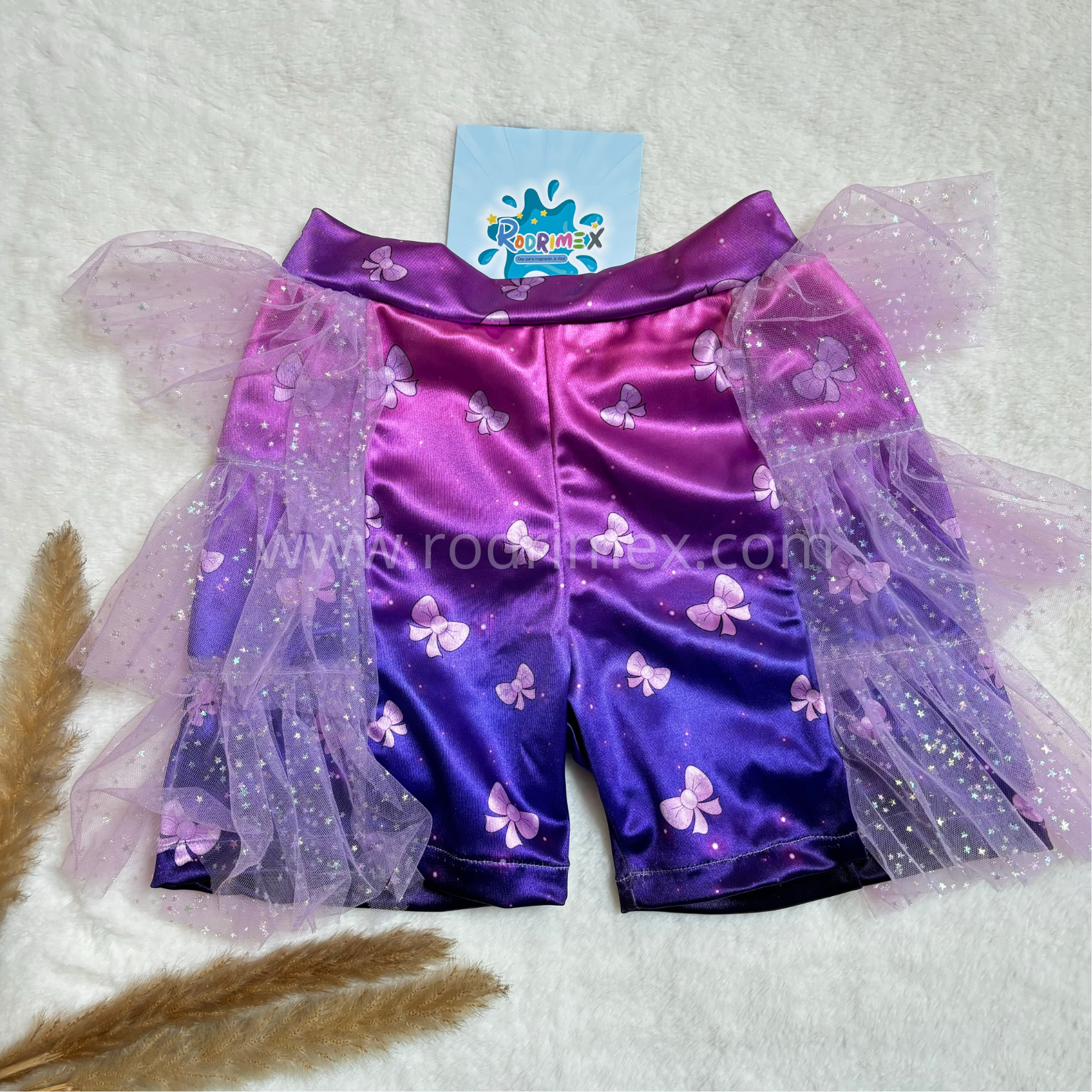 Este modelo en tonos morado combina brillo, fantasía y estilo único para que tu niña destaque en cualquier presentación, show, sesión de fotos o día especial.