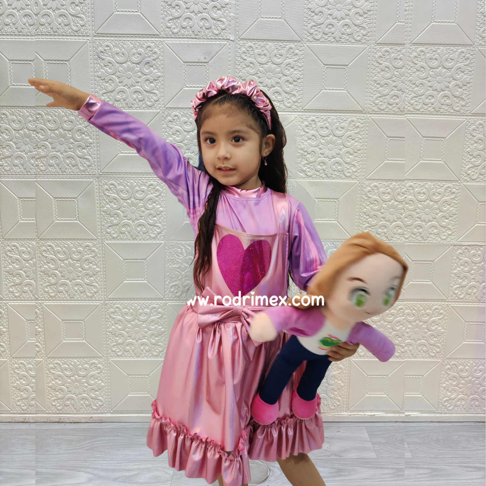 👗 Vestido temático rosado con detalles cuidados que evocan el estilo dulce y encantador de Lara.
