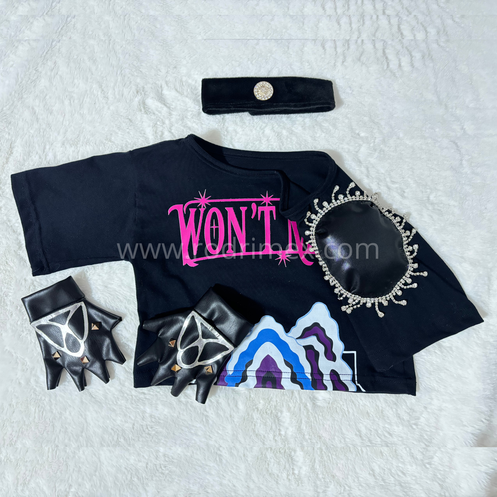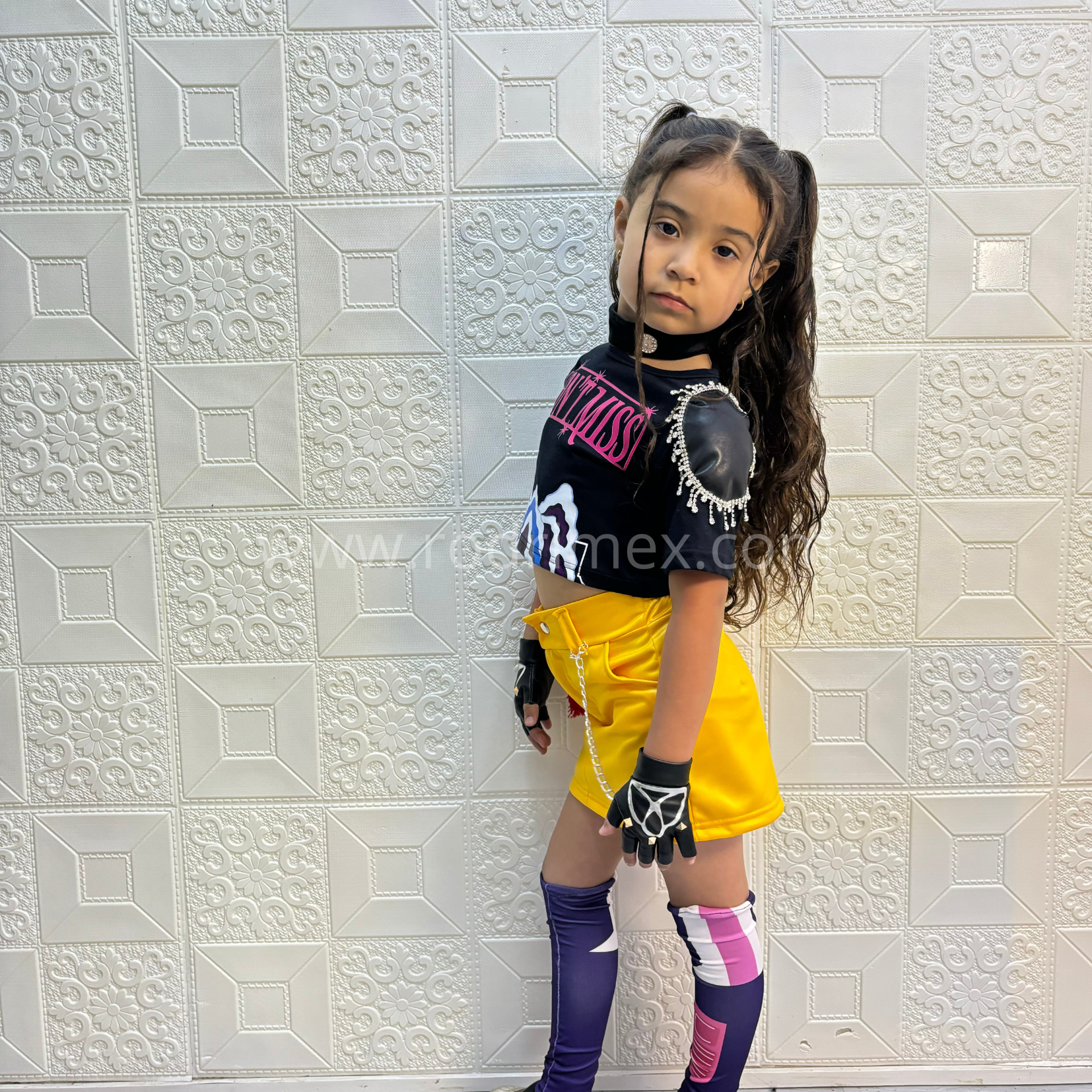 Diseñado para brillar en presentaciones, sesiones de fotos o eventos especiales, este outfit combina fuerza, moda y actitud.