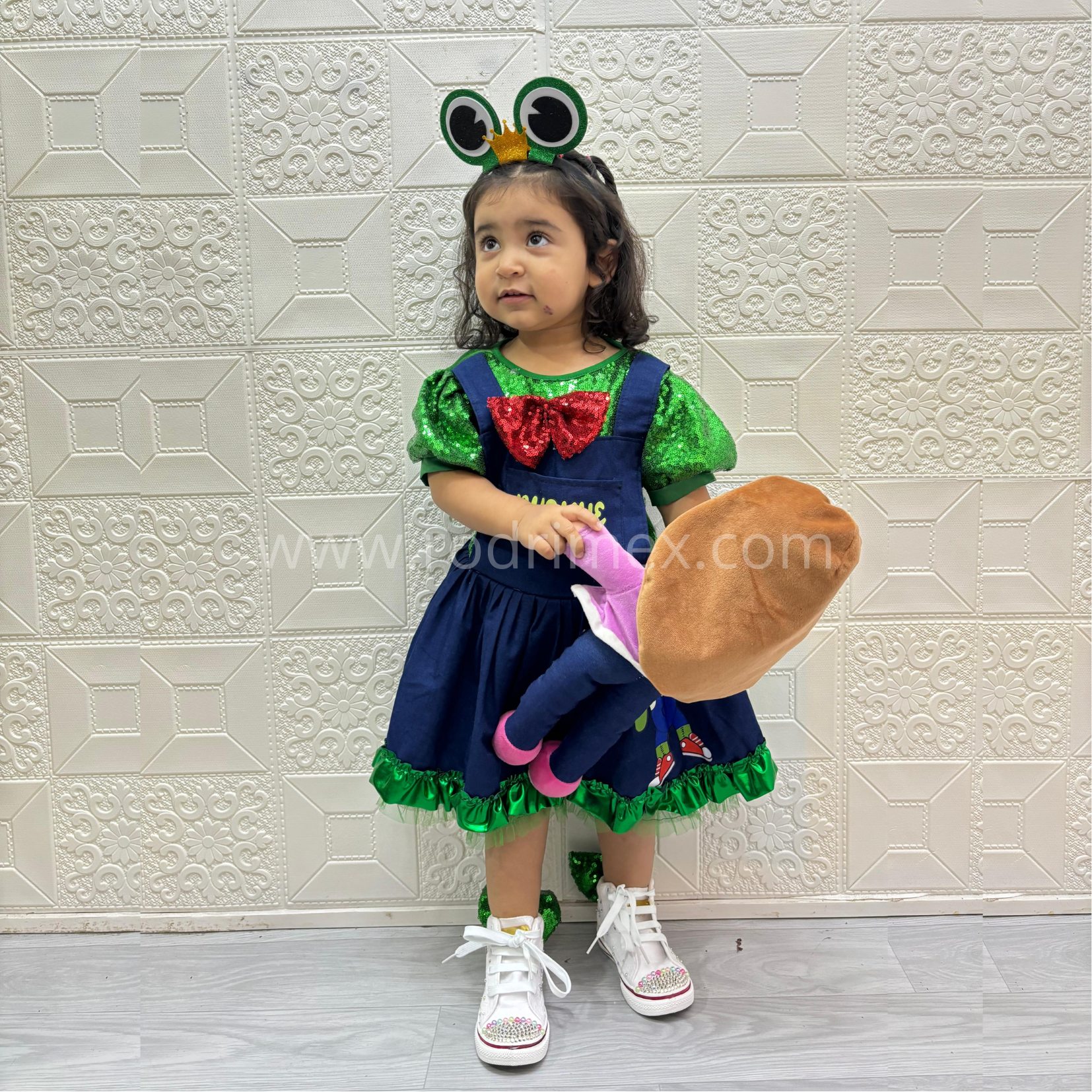 Lo mejor de todo es que el vestido lleva un forro interno, tanto en la parte superior como en la faldita, para que te sientas cómoda todo el tiempo. 💖 Además, lleva preciosa piedrería en los logos, tanto en el nombre como en la imagen de la ranita, para darle ese toque especial. 🎀