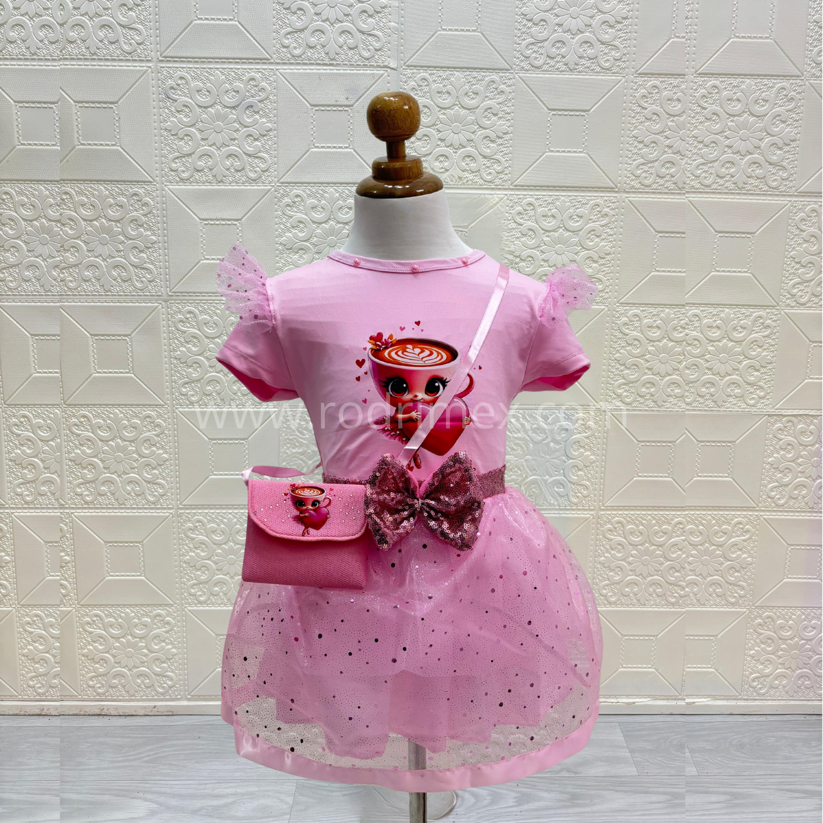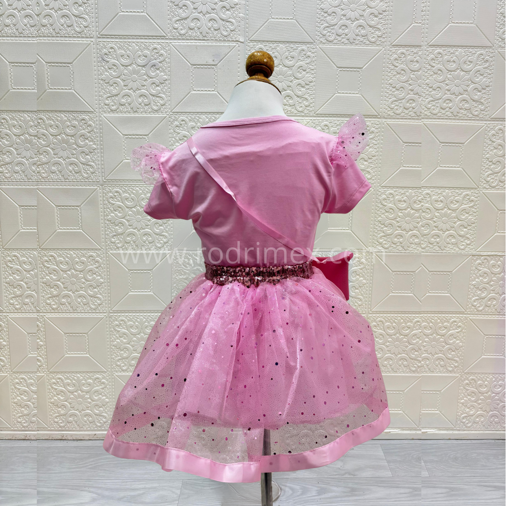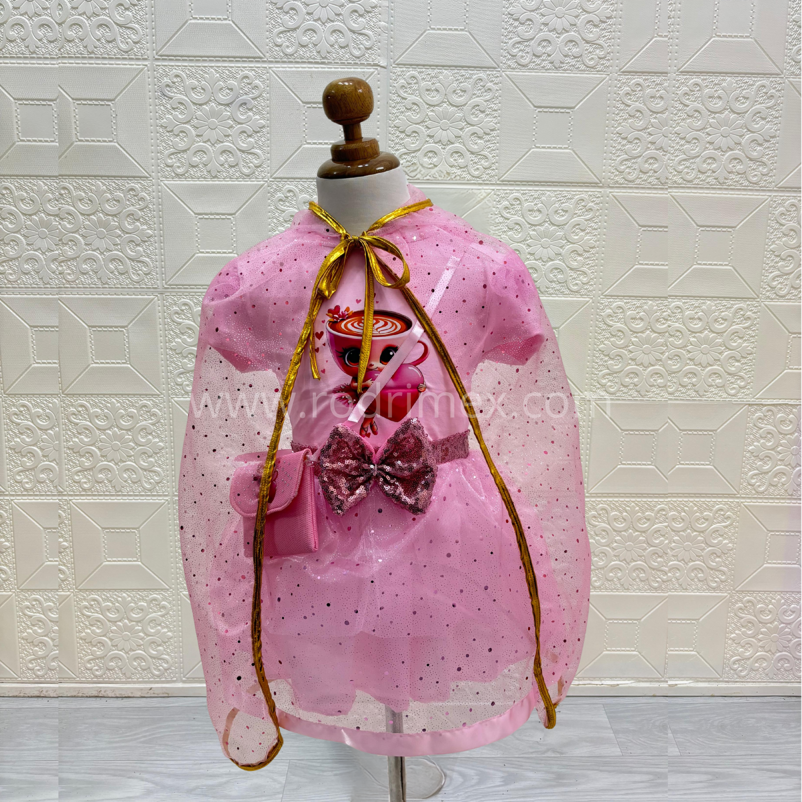 ¡Convierte cualquier momento en un cuento mágico! Este encantador vestido en rosado pastel con brillos es perfecto para que tu pequeña luzca como toda una princesa en fiestas, shows y sesiones de fotos.